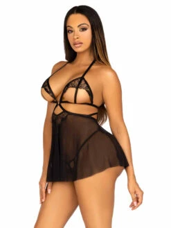 Our babydoll lingerie is the perfect mix of comfort and style. Crafted with stretch mesh and spandex, this piece includes an underwire demi cup with soutache ribbon lace and a matching g-string. Enjoy an elegant fit that won’t compromise on comfort.
