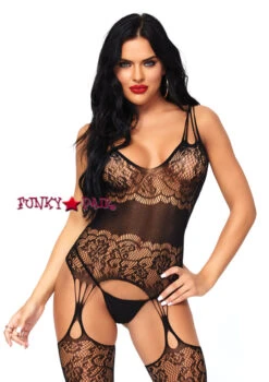 Strappy rose lace suspender bodystocking.