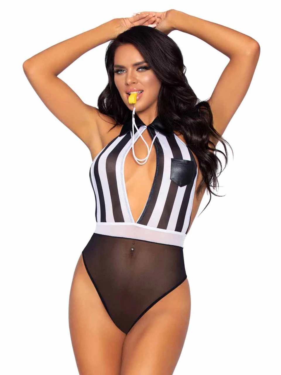 2 PC Bedroom Ref, includes crotchless keyhole striped teddy and time-out whistle.