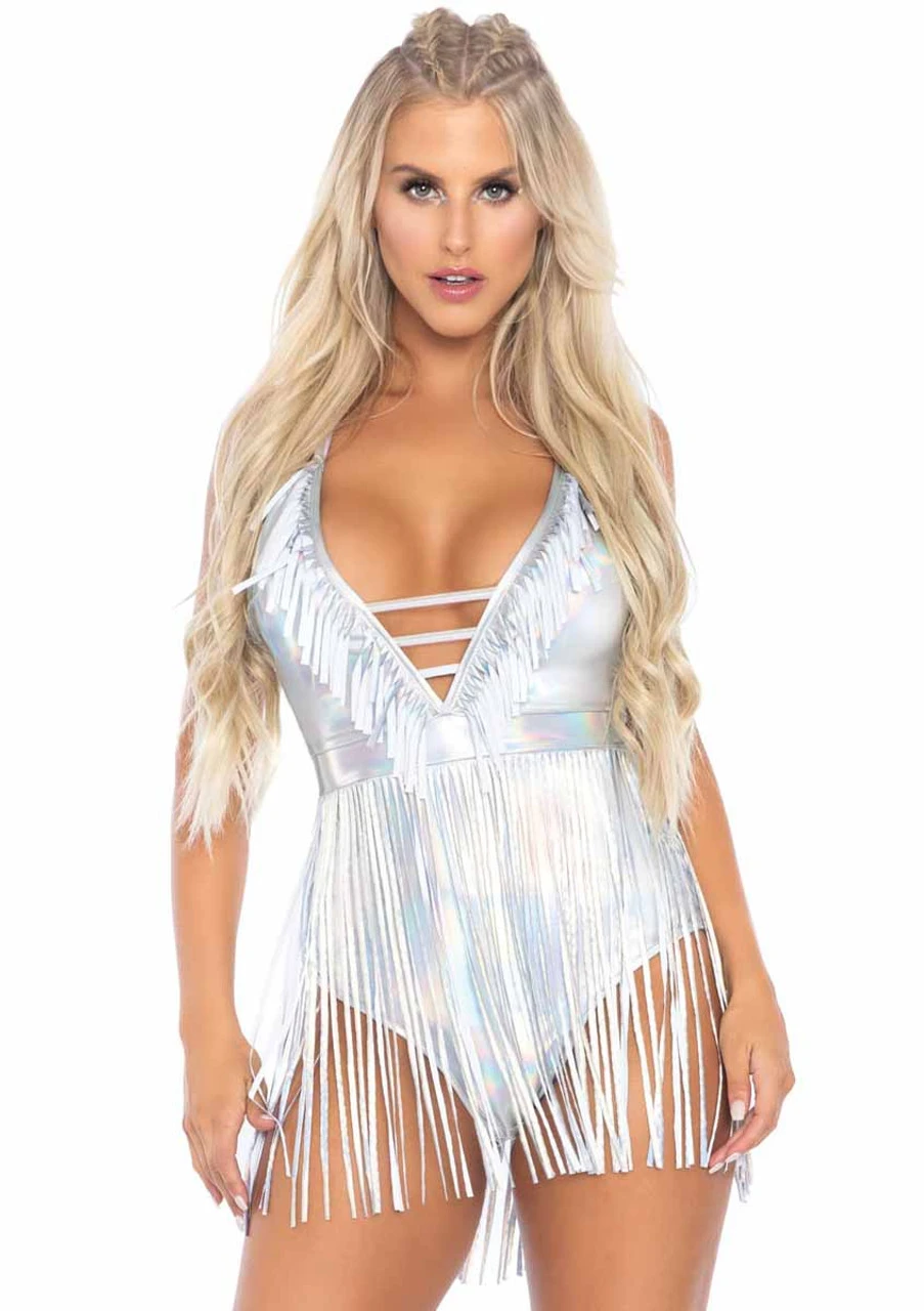 Get your festival style on with this fringe halter bodysuit! This ultra-trendy piece features fabulously frilly details, plus comfortable, stretchy fabric so you can dance the night away. (Belt not included)