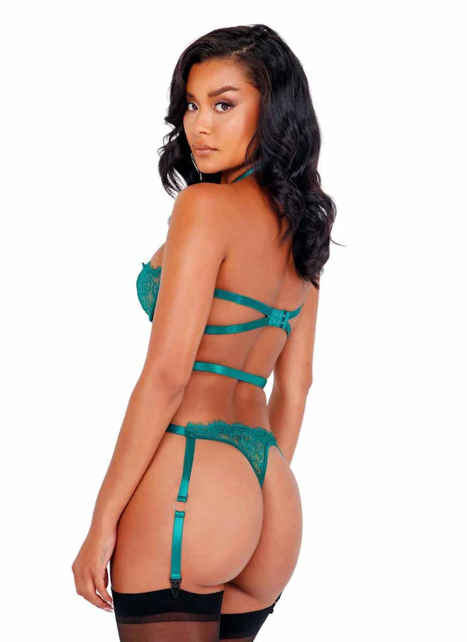 Lacey Criss Cross Underwired Teddy with Garters