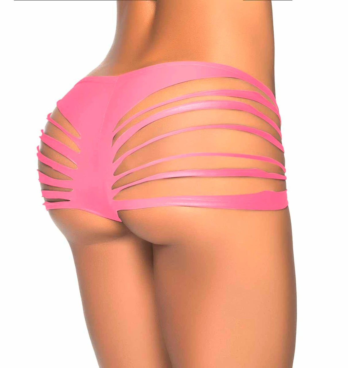 The cropped tank is shredded through the straps and along the front with one wide strap