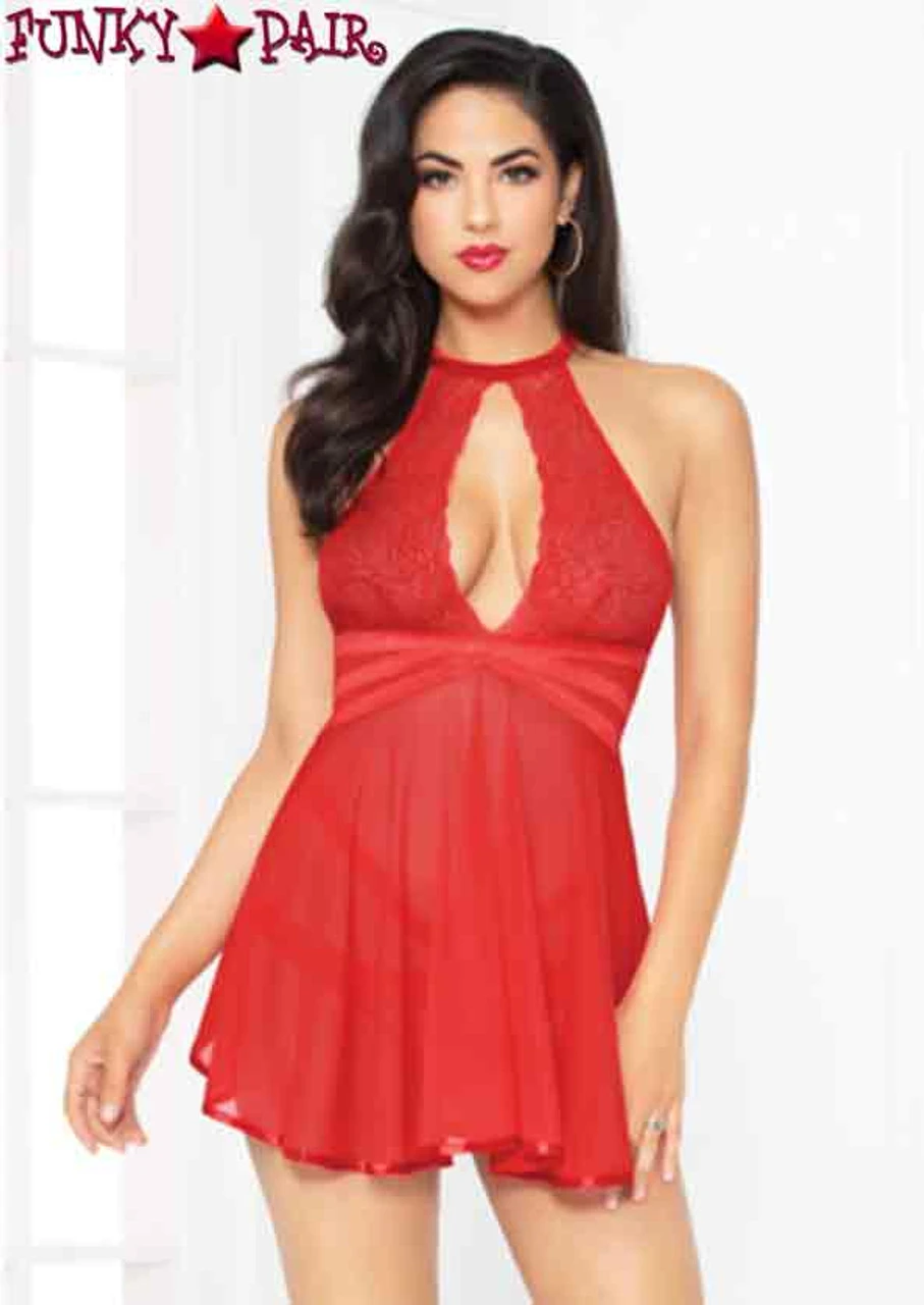 Our flirty babydoll is meant for nights of romance! Made with lace and mesh, you’ll look and feel your best in this beautiful ensemble. Let it tease and tantalize